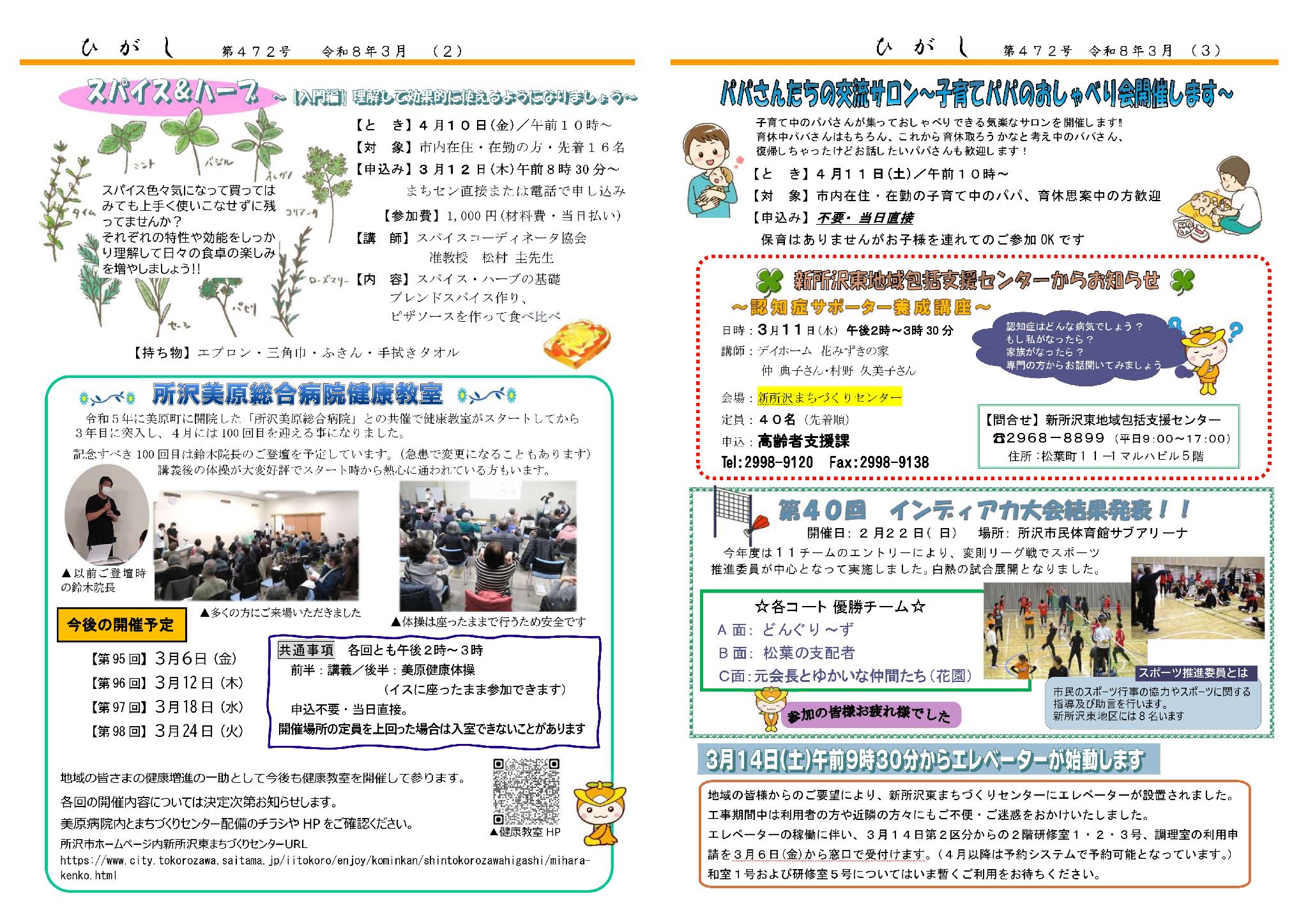 「ひがし」3月号を掲載しました まちづくりセンターだより「ひがし」令和8年3月号を掲載しました。 印刷用はこちら↓ まちづくりセンターだより「ひがし」令和8年3月号 1 ファイル 1.27 MB ダウンロード ツイート