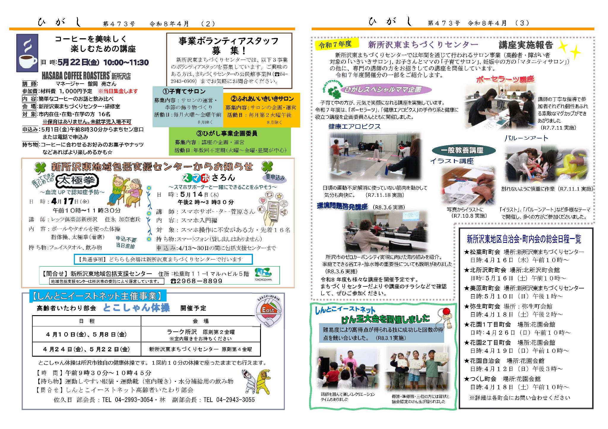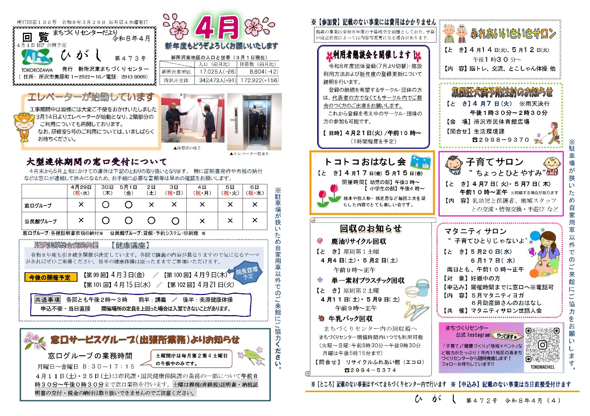 「ひがし」4月号を掲載しました まちづくりセンターだより「ひがし」令和8年4月号を掲載しました。 印刷用はこちら↓ まちづくりセンターだより「ひがし」令和8年4月号 1 ファイル 919.90 KB ダウンロード ツイート