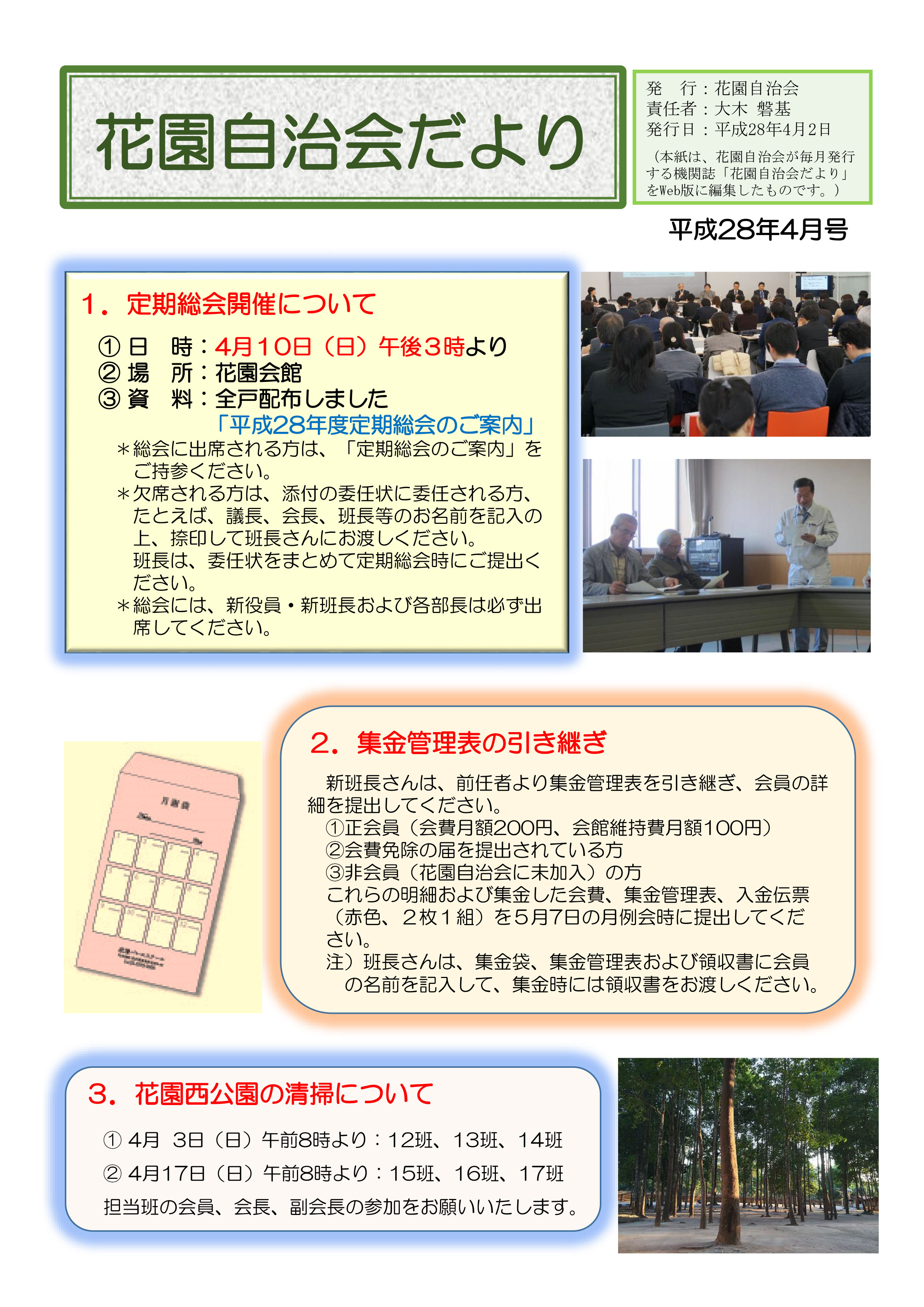 花園自治会だより4月号を掲載します。